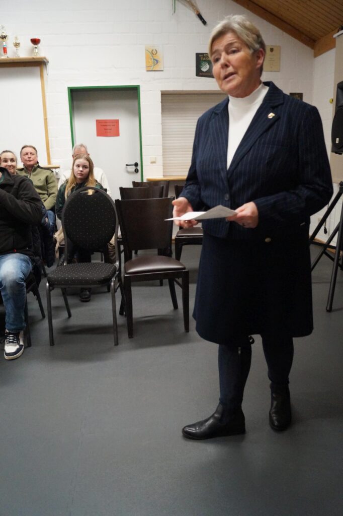 Ortsbürgermeisterin Hanna Bohne überbrachte die Grüße der Gemeinde und gab einen aktuellen Sachstand zum laufenden Verfahren bezüglich des Verkaufes des Sportplatzes.