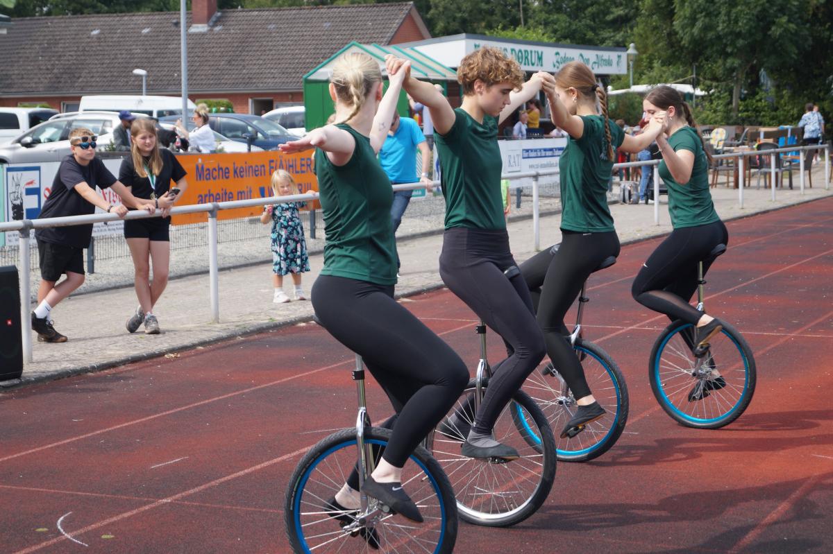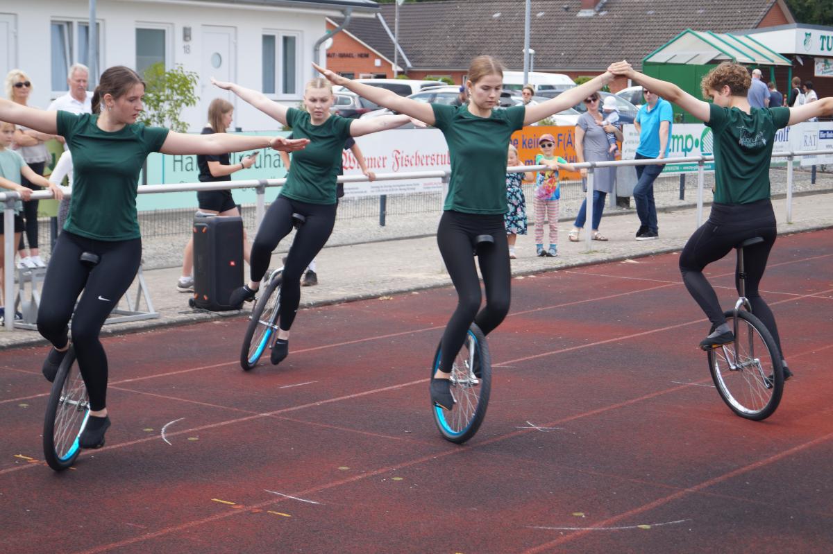 Unsere Kunstradfahrer zeigten beeindruckende Figuren und Kunststücke auf ihren Rädern, während der Jubiläumsfeier.