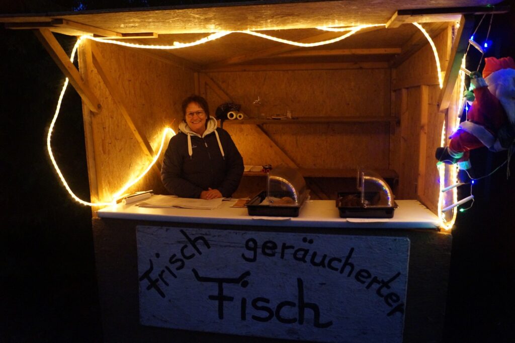 Bratwurst und Glühwein an unserem Stand schmeckten besonders gut. Die DLRG machte die Pommes und beim DRK gab es Waffeln. Beim Bürgerverein wurde ebenfalls gegrillt und es gab kalte und warme Getränke. Auch der Räucherfisch durfte nicht fehlen. Die Feuerwehr bot ihre Champions aus der Pfanne an. Insgsamt ein vielfältiges Programm mit viel Spaß, Unterhaltung und kulinarischen Feinheiten.